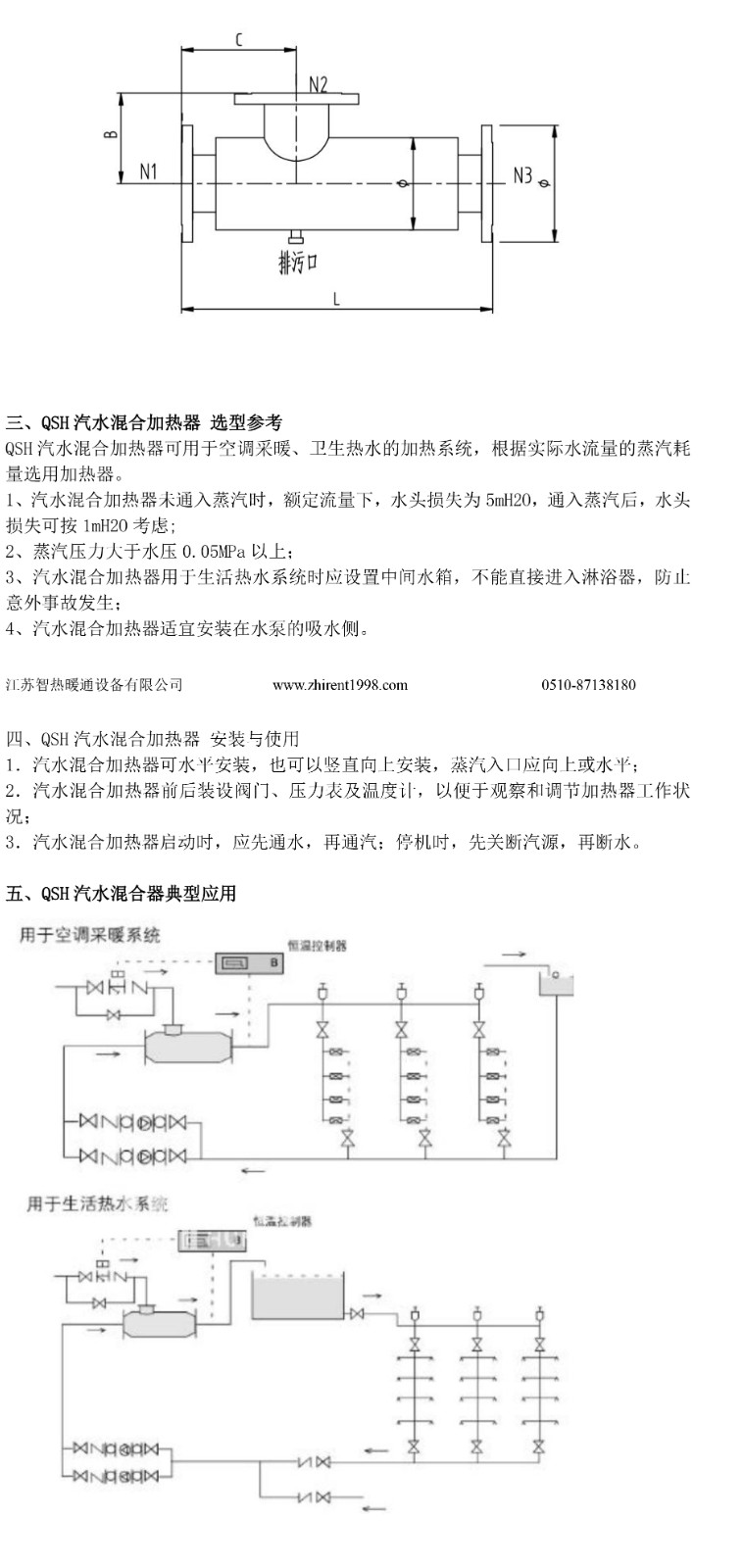 QSH管道式汽水混合器